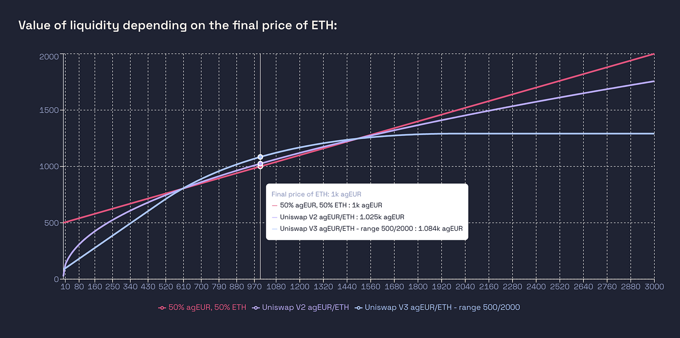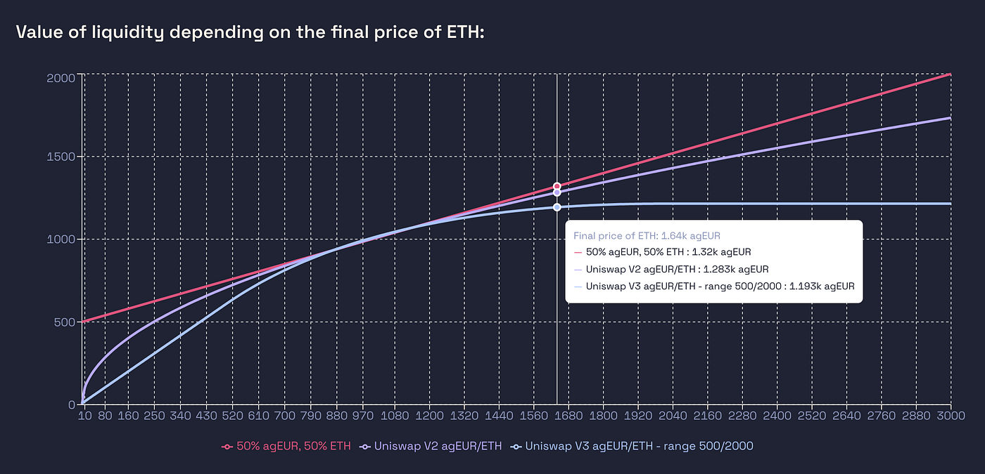 Uni V3 versus holding ETH until 1500, then holding agEUR