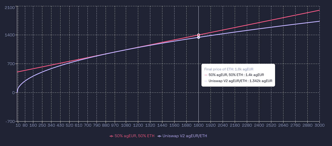 Uni V2 LP versus holding 50% agEUR / 50% ETH