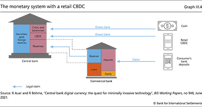 One attribute of retail CBDCs is that they do not entail any credit risk for payment system participants, as they are a direct claim on the central bank (Graph III.4). A retail CBDC is akin to a digital form of cash, the provision of which is a core responsibility of central banks. Other forms of digital retail money represent a claim on an intermediary. Such intermediaries could experience illiquidity due to temporary lack of funds or even insolvency, which could also lead to payment outages. While such risks are already substantially reduced through collateralisation and other safeguards in most cases, retail CBDCs would put an end to any residual risk.