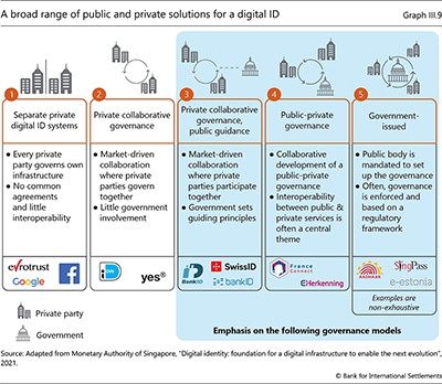 Some countries follow models based on public-private partnership. In one variant, market-driven collaboration is guided by principles set out by the authorities (panel 3). For instance, a consortium of banks in Sweden developed the BankID solution, which allows users to authenticate themselves for payments and government services. Similar solutions are offered in Denmark, Finland and Norway.