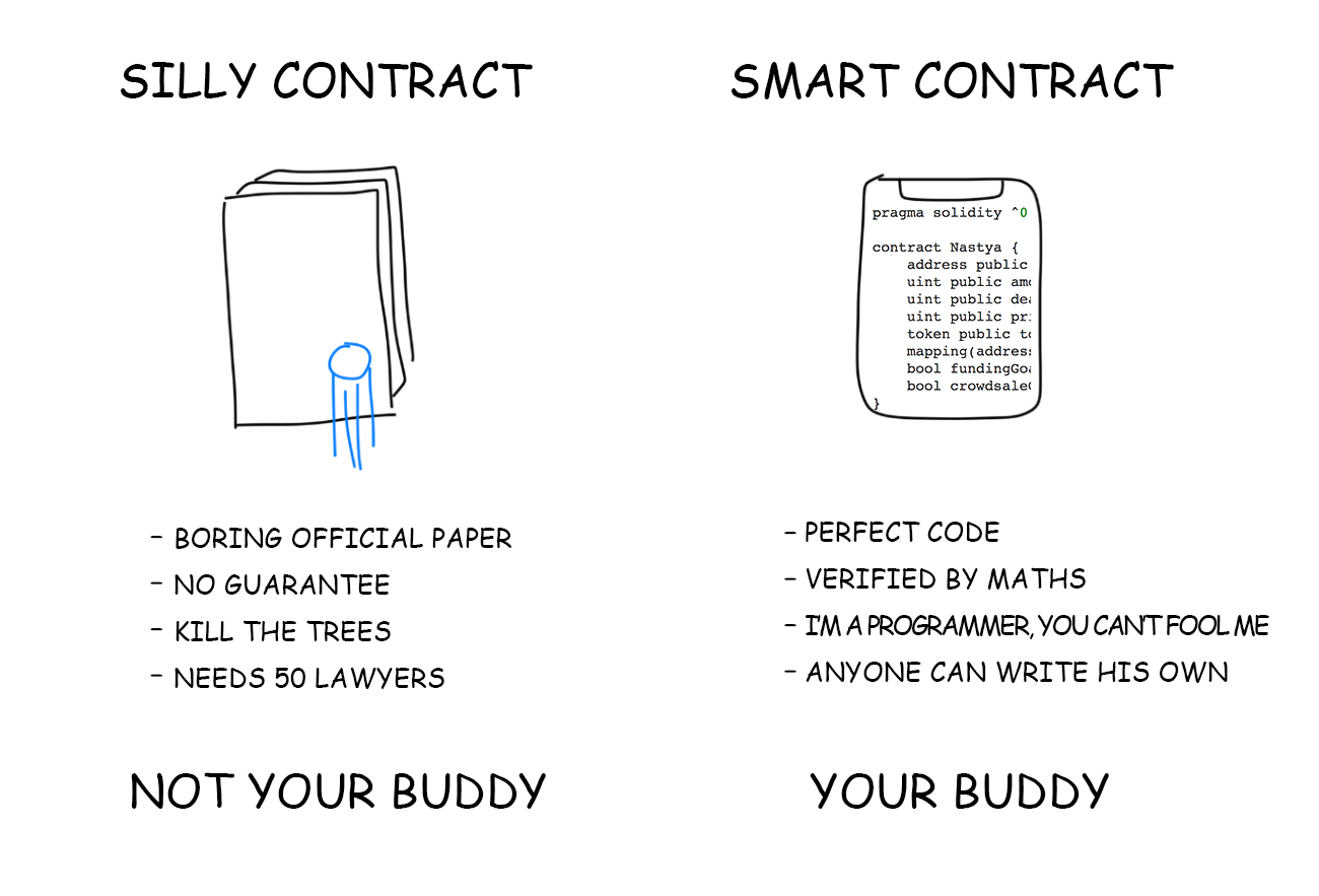 Let’s figure out smart contracts first. It is hard to understand the altered Ethereum blockchain and other things straight away. I’ll tell you later, I promise.