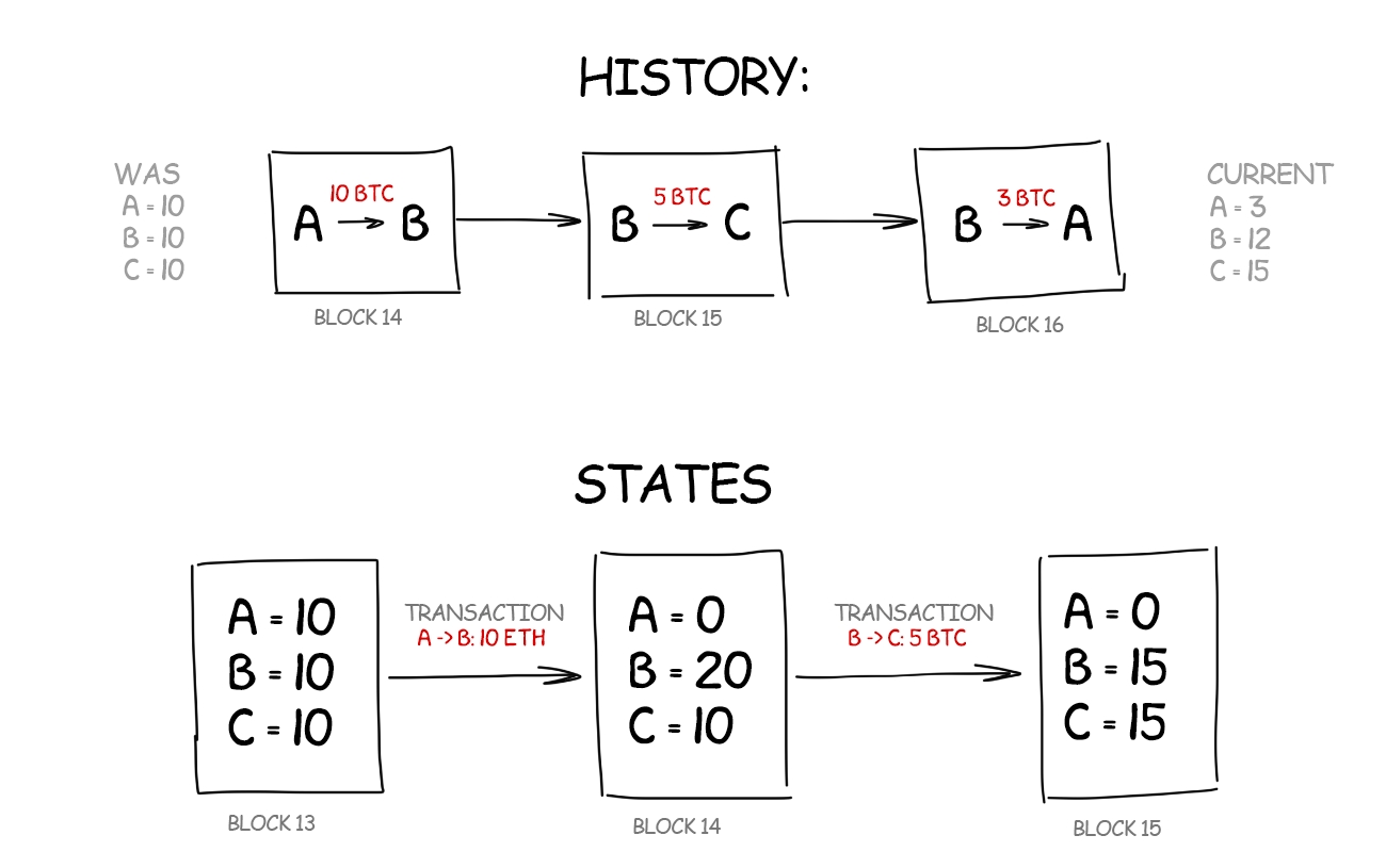 History and States are not some different entities but two approaches to understanding the same thing. Technically, even bitcoin wallets inside themselves turn the history into the state in order to make it simple.