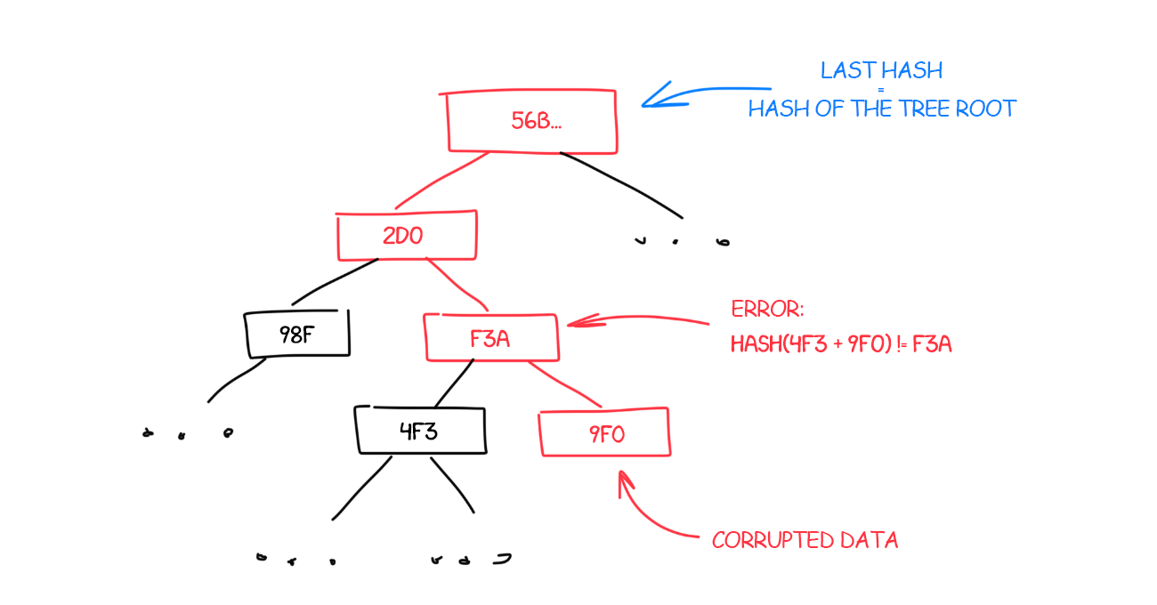 Hash of the storage becomes one of the most important components of the block. It is always included in every block found and gets verified by all network members so that no one tries to “forge” the state of the system. Merely the Merkle tree allows you to do this quickly: you only need to check the changed parts of the tree, the hashes of the others remain the same.