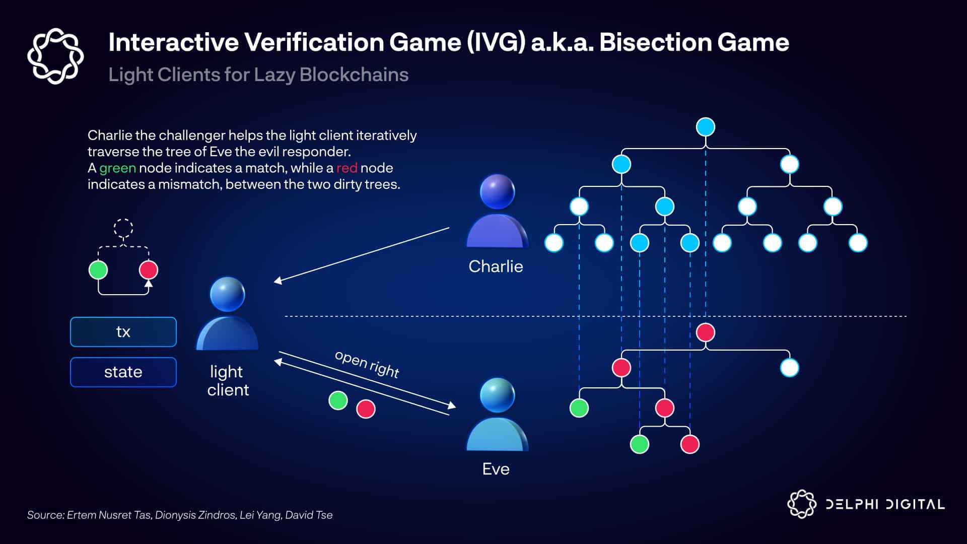 SRs are likely to use single round fraud proofs (this is what Cevmos plans to use). These operate on a much weaker assumption because light clients can receive the fraud proof from an honest challenger and keep passing it along. Light clients no longer sit between the challenger and responder while maintaining a connection. You just need to receive the fraud proof from anyone, then you can check it yourself. Note that single round fraud proofs can introduce higher latency though, as they’re slower to execute. They can also have a larger attack surface than IVGs.