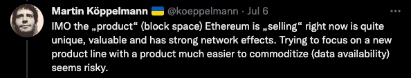 It remains to be seen if relying on DA alone provides sufficient value capture to build economic security. DA is valuable, but it’s a resource we know how to scale incredibly well. A paradigm shift would be required for this to change. Looking at something like 5+ years out though, I don’t think anyone can reasonably predict.