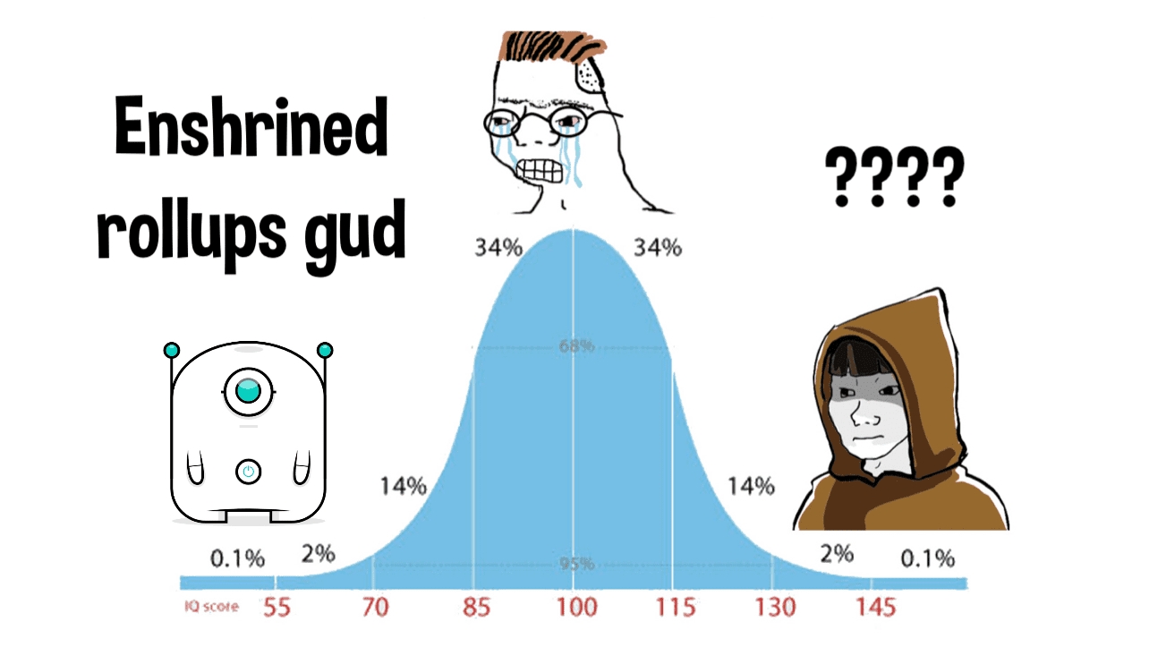 If the Ethereum ERs were speculative, this is a mile further. There are no current plans for this. This is just one left side of the bell curver offering an opinion. I think enshrining a general-purpose rollup into Celestia is a potentially attractive option. Let me explain.