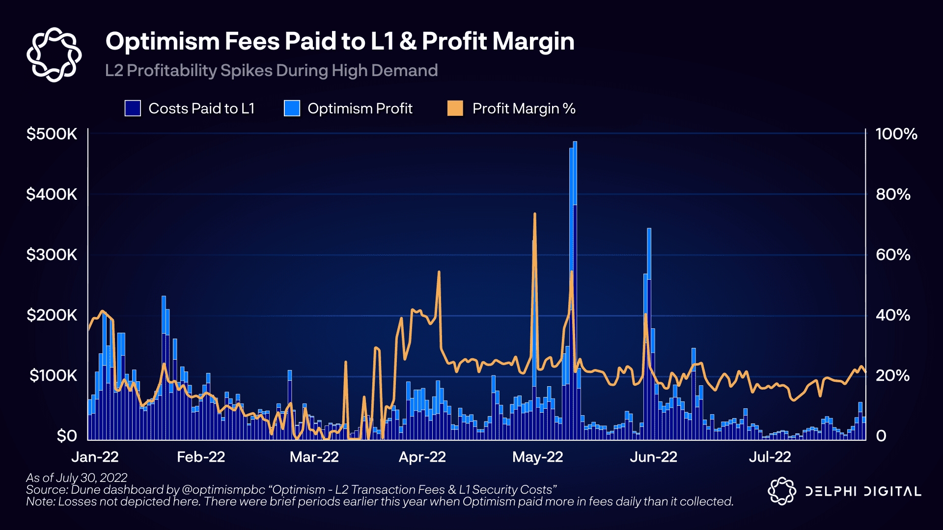 On top of these fees paid to L1, rollups charge surge pricing for L2 gas fees as needed and costs to cover rollup operator expenses. A more detailed analysis can be found here.