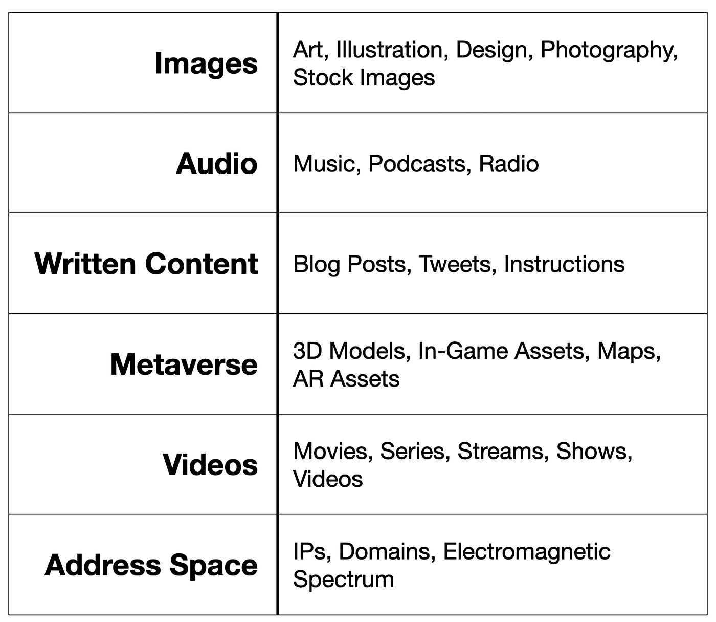 This list is just scratching the surface of the broad spectrum of digital content. But we shouldn’t think of NFTs as tokenized digital content itself. A core insight is that NFTs are much better understood as encapsulating intellectual property rights to the assets they describe. [14]