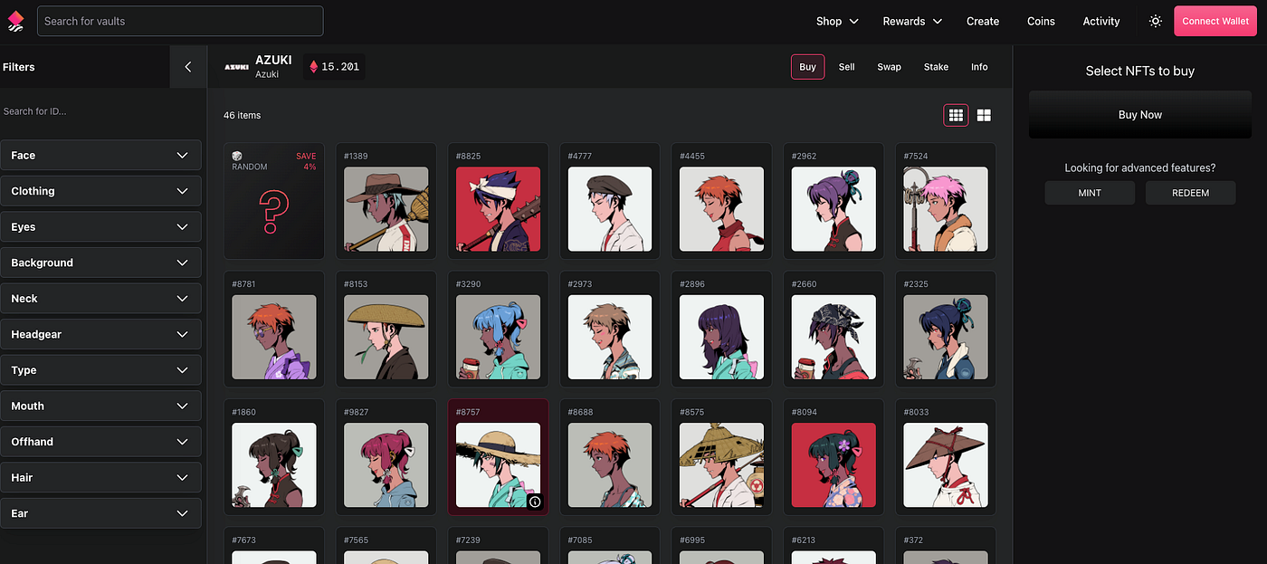 Azuki Vault on NFTX. All items share the same Buy Now price