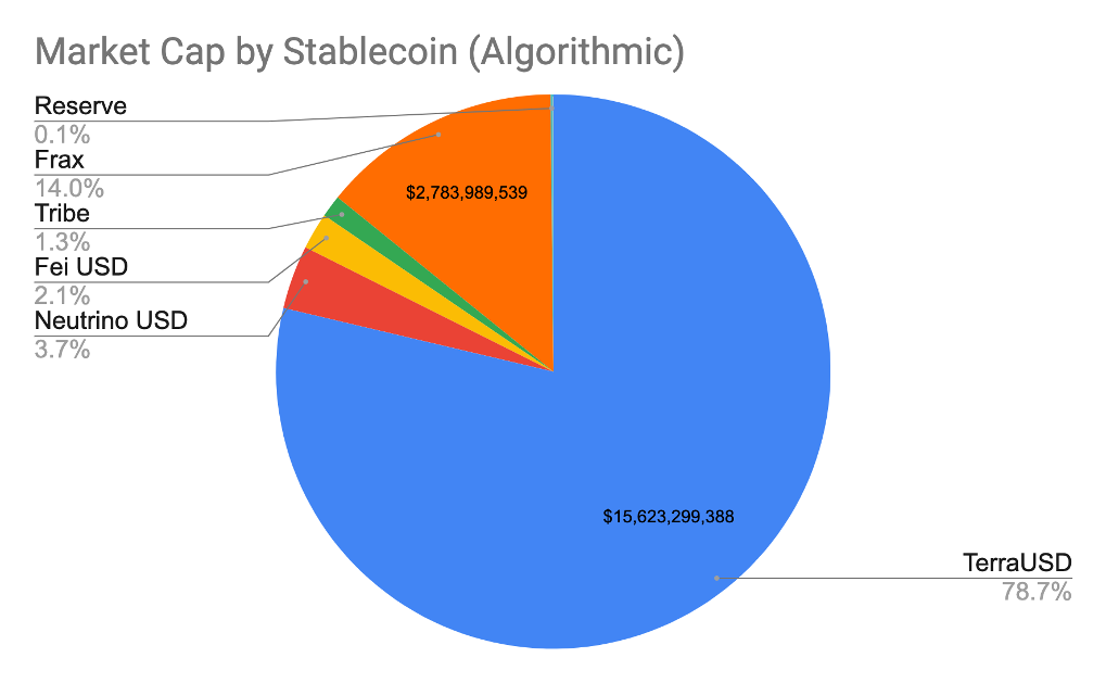 Total market cap of algorithmic stablecoins currently stands at +$19 billion. Source: CoinMarketCap