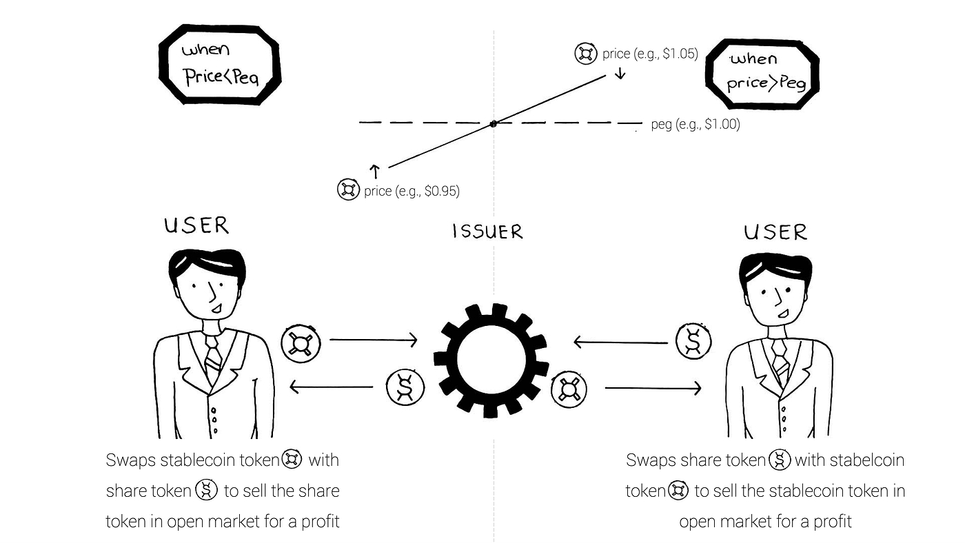 Stability: Algorithmic stablecoin protocols rely on protocol participants to achieve stability. For example, when demand to an algorithmic stablecoin falls, the price of that stablecoin falls below its peg. This requires existing participants of the protocol to collectively absorb short-term volatility. They do this by holding onto their share tokens (and not selling off like the rest of the market) and betting on the future of growth of the demand to stablecoin. This is difficult to achieve with so many trustless parties, and historically, many algorithmic stablecoins lost their pegs during market downturn. This will become more clear as we talk about specific projects in Section 4.
