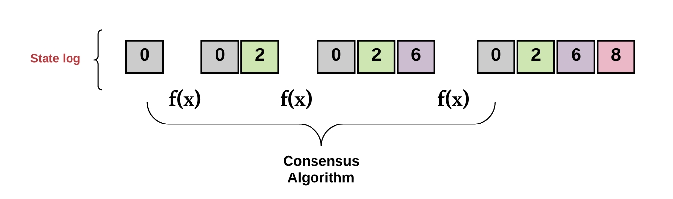 In other words, a replicated state machine is a set of distributed computers that all start with the same initial value. For each state transition, each of the processes decides on the next value. Reaching “consensus” means that all the computers must collectively agree on the output of this value.