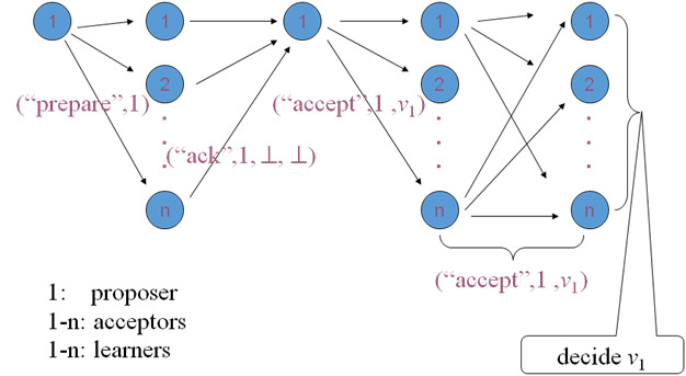 As we just learned, in traditional consensus, f(x) is defined such that a proposer and a bunch of acceptors must all coordinate and communicate to decide on the next value.