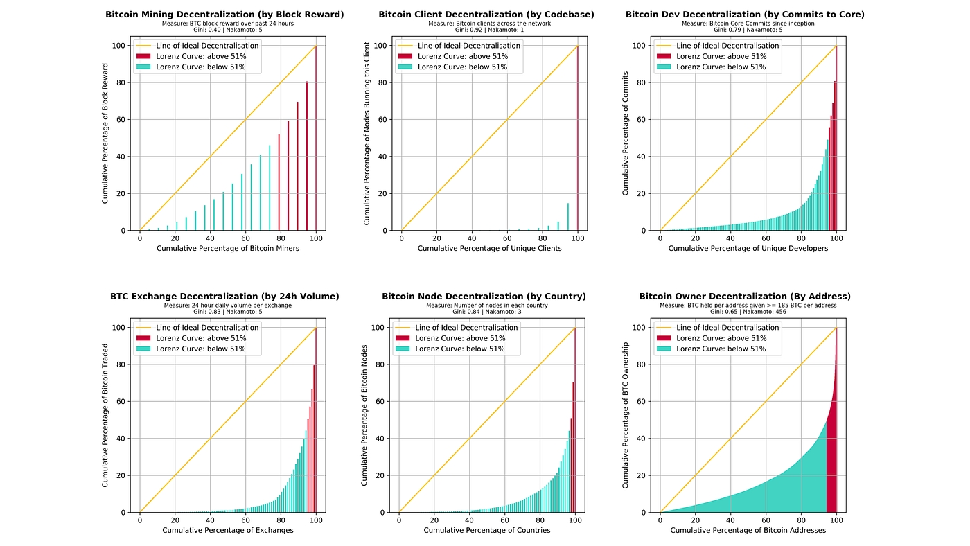 Optimization. Finally, and most importantly, a quantifiable objective function (in the mathematical sense) determines the outcome of any optimization procedure. Superficially similar objective functions can produce very different solutions. If our goal is to optimize the level of decentralization both across and within decentralized systems, we are going to need quantitative metrics like the Lorenz curve, the Gini coefficient, and the Nakamoto coefficient.