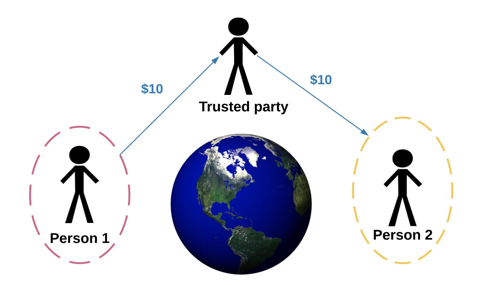 In other words, unless there is a direct physical transfer of value from one individual to the other, there must be some intermediary that exists that we “trust”.